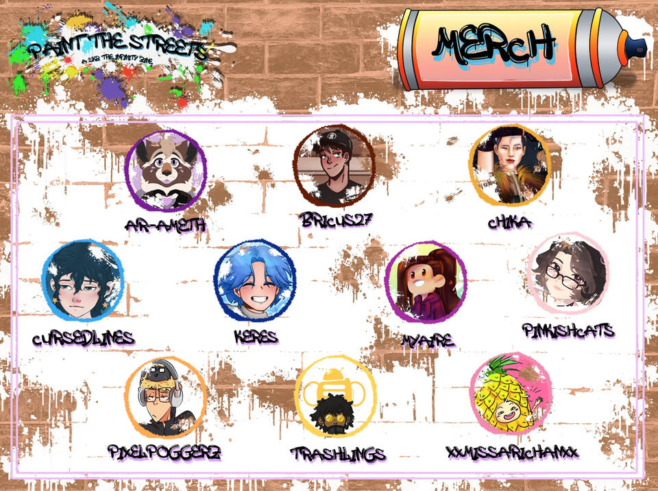 Merch Artists:AR-Ameth | Bricus27 | Chika | Cursedlines | Keres | Myaire | Pinkishcats | Pixelpoggerz | Trashlings | xxmissarichanxx